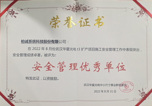 近日,BOTH武漢華星t5項(xiàng)目團(tuán)隊(duì)再次榮獲“安全管理優(yōu)秀單位”獎項(xiàng),這是武漢華星t5項(xiàng)目團(tuán)隊(duì)連續(xù)3個月獲得此殊榮,項(xiàng)目安全員獲得“安全管理優(yōu)秀個人獎”。