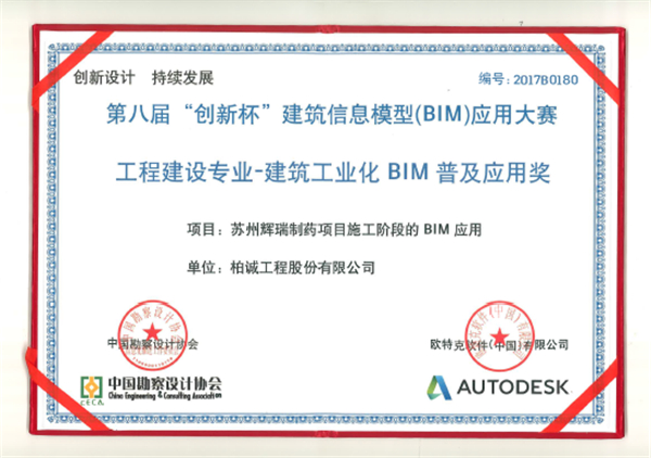 近期,公司蘇州輝瑞制藥項目施工階段的BIM應用,在第八屆“創(chuàng)新杯”BIM應用大賽中表現(xiàn)優(yōu)秀,喜獲工程建設專業(yè)--建筑工業(yè)化BIM“普及應用獎”,特此通報。