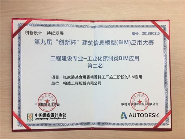 2018年9月,公司張家港某食用香精香料的BIM應用項目,在第九屆“創(chuàng)新杯”建筑信息模型(BIM)應用大賽中表現(xiàn)優(yōu)秀,喜獲工程建設專業(yè)—工業(yè)化預制類BIM應用第二名,特此通報。