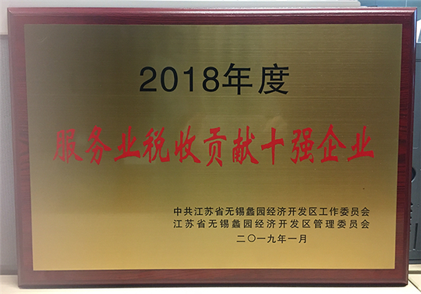 2019年1月,公司榮獲江蘇省蠡園經(jīng)濟(jì)開發(fā)區(qū)2018年度“服務(wù)業(yè)稅收貢獻(xiàn)十強(qiáng)企業(yè)”稱號(hào)。