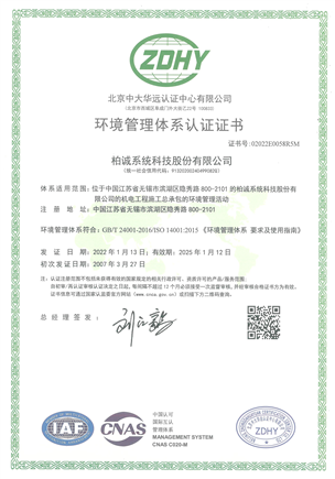 ISO環(huán)境管理體系證書
